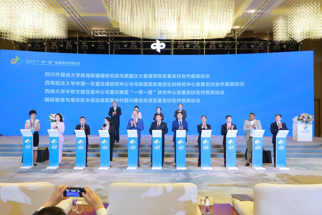 5月17日,由“一带一路”智库合作联盟和重庆市人民政府主办的2023“一带一路”陆海联动发展论坛期间,四川外国语大学联合47家中外智库发起成立西部陆海新通道智库联盟(以下简称智库联盟),我校董洪川校长担任智库联盟秘书长。