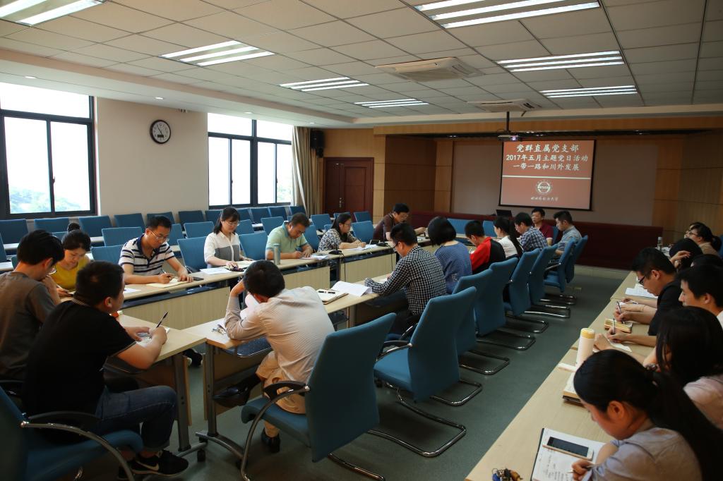 5月17日, 按照统一安排,直属党群支部开展首次主题党日活动,主题为“一带一路”与川外发展。党委书记明国辉分享了他出席北京“一带一路”国际合作高峰论坛的感受和认识。