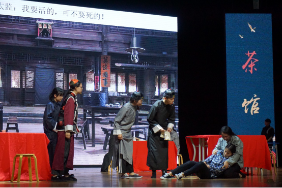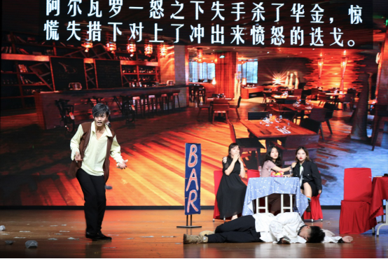 比赛结束后,舞台表演评委徐海洋老师对三天的话剧做了点评。徐海洋老师首先表达了这场戏剧盛宴带给他的欣慰与享受,充分肯定了同学们的舞台表现,同时也指出了一些不足,例如道具使用不当,情景融合欠佳,表演缺乏细节等。