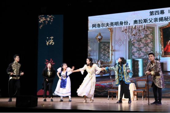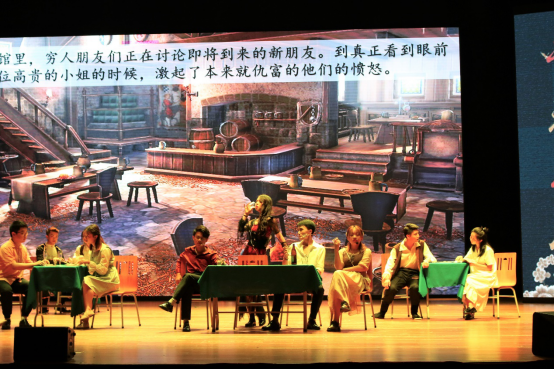 有的院系改编世界名著,用他们崭新的演绎方式,为我们再现经典:如商务英语学院的《亨利四世》(Henry IV),教育学院的《死亡诗社》(Dead Poets Society)、国际商学院的剧目《项链》(Necklace)和英华萃戏剧社的《金苹果之争》(The Golden Apple of Discord)。还有些院系致力于弘扬中华文化自信,以中华文学为元素改编或创作了英语话剧,让更多的中华优秀文学为世界所知:如翻译学院《红楼梦》(A Dream in Red Mansions)和社会学系的话剧《望月怀远》(Moonlight Reflected In River)。