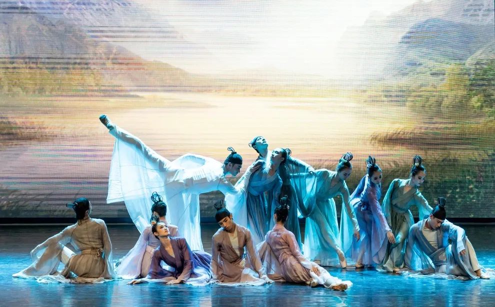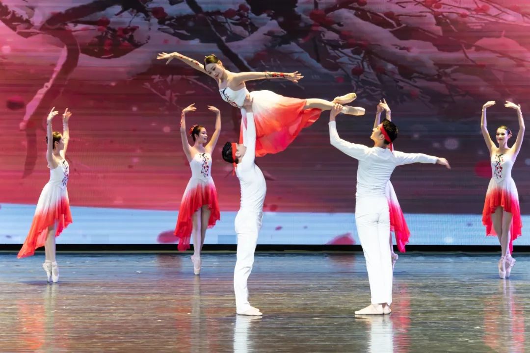 《百年红梅傲雪开》以舞蹈艺术为手段塑造出一个有血有肉的“江姐”形象,舞者犹如雪中梅花,冷冽寒冬中旋转、跳跃,裙摆飞扬,红梅朵朵绽放,舞出了坚忍不拔、无私无畏的江姐形象。《羽》当中,2021“顶尖舞者”、优秀青年芭蕾舞演员常志旭演绎的黑天鹅在幽蓝的湖面上恣意畅快地起舞,它振翅、奋力高飞,谱写一首激昂澎湃的生命之歌。鸟鸣春涧中,2022“顶尖舞者”李思雨等带来的《惊鸿》通过展现鸿雁在青山绿水中自由翩然起舞的灵动形象,把秀美的山川草木巧妙融于芭蕾之中。《山水重庆》将重庆的山水之美和芭蕾艺术完美融合在一起,演员们用身体和舞姿演绎这座城市的高低起伏和曲折环绕,演绎艳阳下的峥嵘和雨雾时的空濛,以身形描绘重庆绿水青山好风光。《峡梦吟》用芭蕾舞艺术演绎重庆历史文化,表达了古代诗人触景生情,期盼花好月圆的美好愿望。《我的祖国》中,演员们摆动红裙,飘扬红纱,高扬红旗,朵朵红花在纱布下摇曳绽放,给观众带来了极大的视觉震撼。