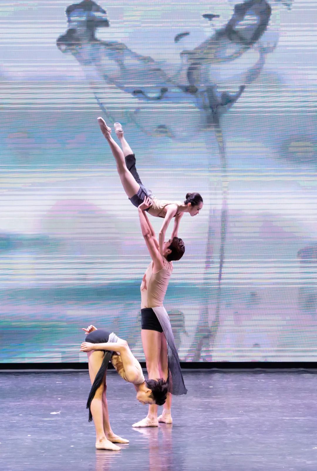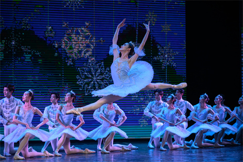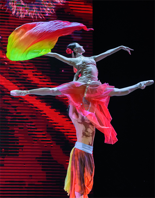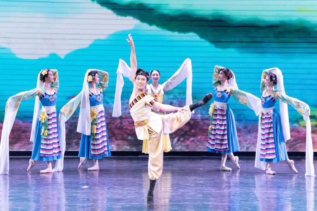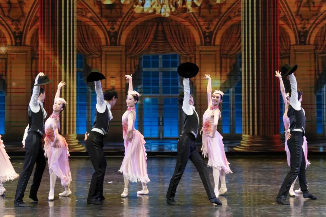 经典旋律改编的舞蹈《四小天鹅》《卡萨布兰卡》《沙漏》《波尔卡圆舞曲》等也纷纷精彩上演。《四小天鹅》中四只可爱的天鹅脚尖整齐划一,在欢快跳跃的节奏中充分展现了芭蕾舞的灵动。《卡萨布兰卡》以一曲经典忧伤的爱情名曲,一场缠绵悱恻的芭蕾舞蹈让人动容。《波尔卡圆舞曲》中生动、欢快旋律与舞蹈,表达着我们幸福的生活和最美好的祈愿,芭蕾舞者们翩翩起舞,灵动的足尖尽显高雅艺术的美妙。《再唱山歌给党听》中悠扬的山歌彻响,舞者身穿少数民族服饰,舞动着长白袖欢快起舞,歌颂党的丰功伟业和祖国的繁荣昌盛,也欢庆人民幸福安康、祖国万盛强大。演出压轴的《拉德斯基》中,熟悉的旋律引得观众们不由自主地跟着舞者的流畅的步伐拍起节奏,现场气氛十分热烈。