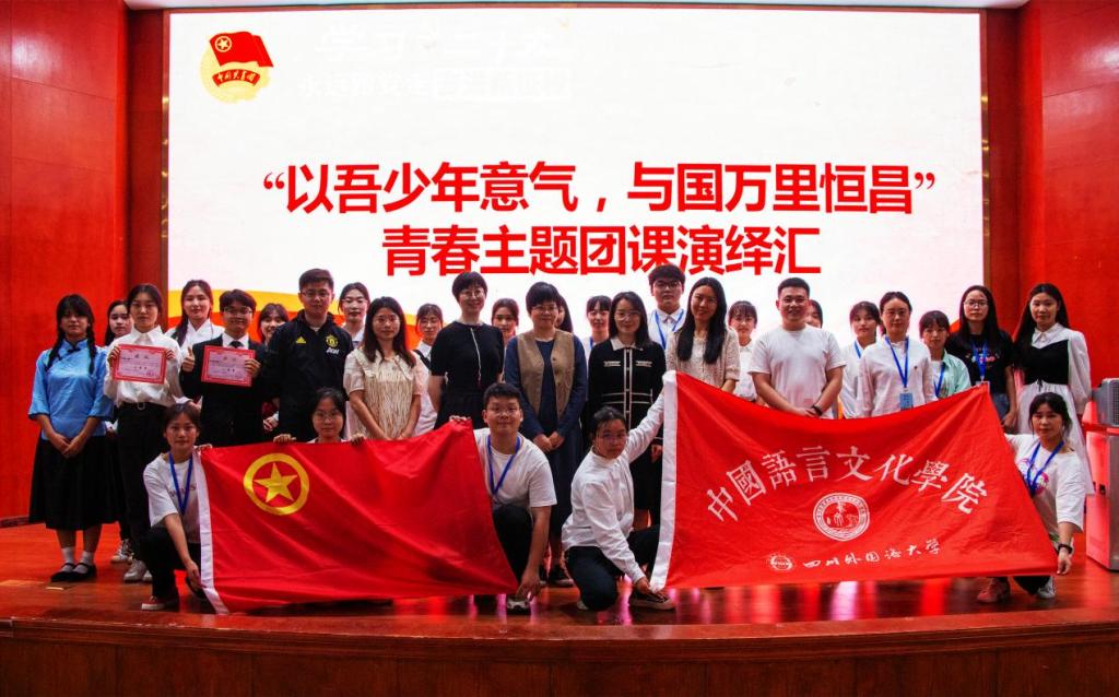 为学习贯彻党的二十大精神,深入开展习近平新时代中国特色社会主义思想主题教育,以党建带团建,为广大青年学生搭建展示自我、提升能力、交流思想的平台,四川外国语大学中国语言文化学院于2023年4月21日在东区培英楼放映厅举行“以吾少年意气,与国万里恒昌” 青春主题团课演绎汇。