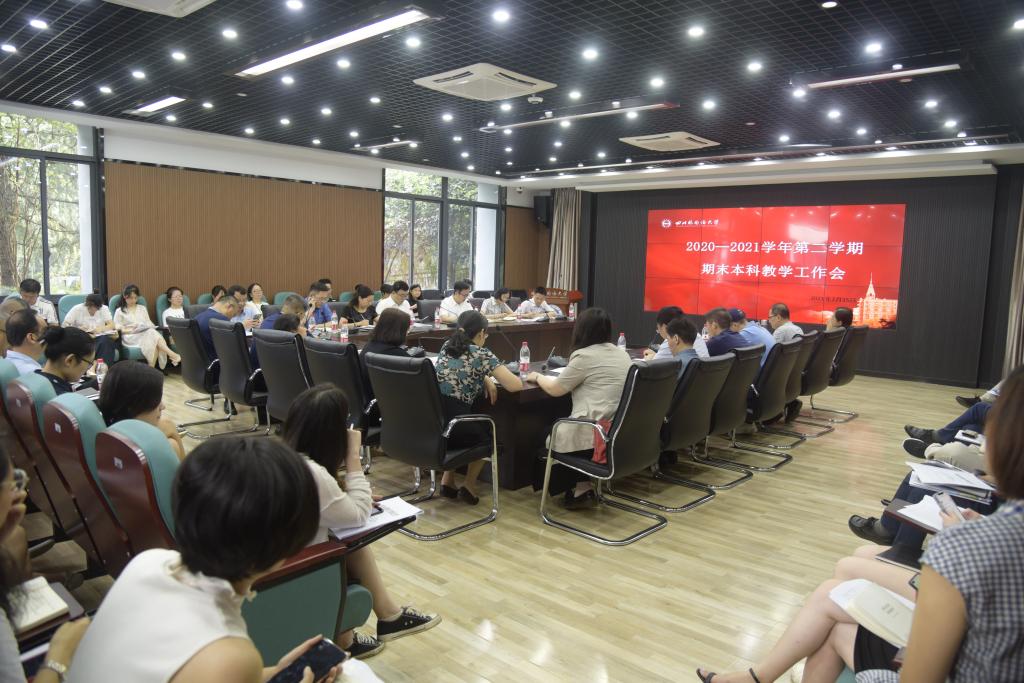 教务处处长刘玉梅首先传达学习了重庆市高等学校课程思政建设行动计划(2021—2025),并表示接下来学校将系统推进落实,进一步加强课程思政建设,提升建设成效。接着,她对本学期工作进行总结,并安排部署下一步主要工作。她指出,在学校党政领导下,各教学单位、职能部门的支持下,学校本科教学工作有序推进,圆满完成了本学期的各方面工作。她从专业建设、课程建设、教材建设、教学改革、实践教学、日常管理、专项工作十个方面总结了本学期的主要工作,并就新文科建设工作、2021版人才培养方案完善、教学成果奖申报、国家级和市级一流课程申报、新专业申报等方面安排部署了下一步重点工作。
