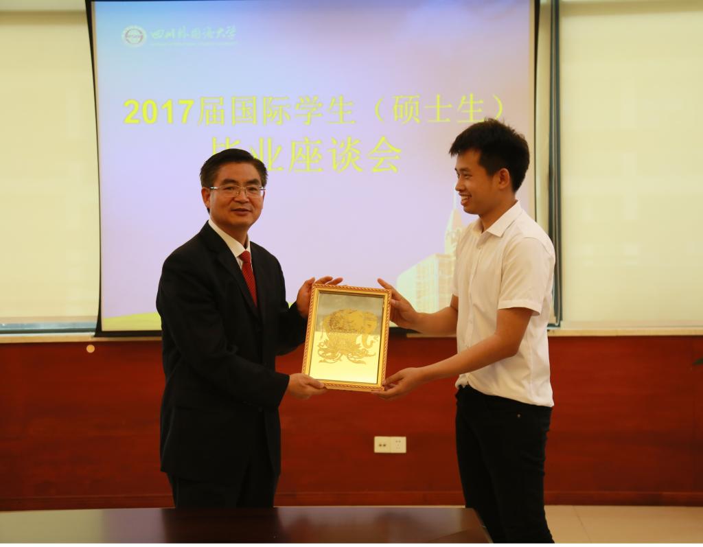 今年我校共有来自泰国、俄罗斯、越南、韩国等国家的24名国际学生(硕士生)毕业。座谈会上,同学们分享了各自在川外学习的点点滴滴,纷纷表示感谢川外的培养,感谢老师们的辛勤付出。动情之处,有的同学几度哽咽,言语之间尽是对母校的难舍之情。
