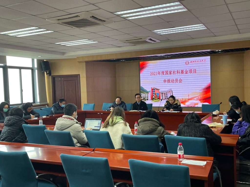 科研处丁健琼老师向与会人员介绍国家社科基金项目的申报要求及填表规范,对国家社科基金项目申报工作各个重要时间节点作了强调。