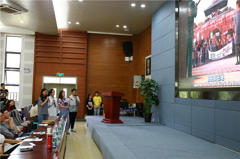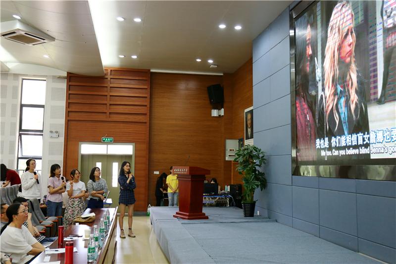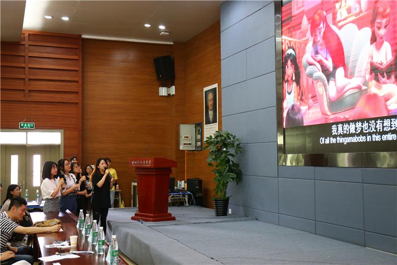 大学外语教学部主任殷和素教授、副主任向蓉副教授、党支部书记牟方华副教授、那瑛副教授、读写教研室主任付强副教授担任此次配音大赛决赛评委。大外部全体教师及2017级、2018级学生到场观看了比赛。在决赛中,各参赛队伍各尽其才,展示了深厚的语言功底,语音语调自然,与原音契合度高,比赛现场掌声阵阵。