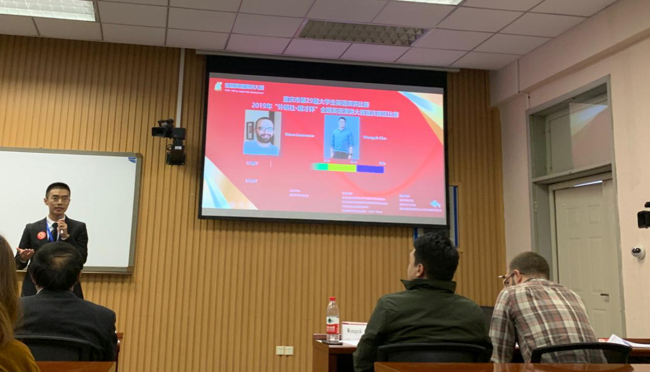 26日下午进行的是重庆市第二十九届大学生英语演讲、阅读比赛暨2019年“外研社•国才杯”全国英语演讲重庆赛区(决赛)、阅读大赛重庆赛区比赛。在上午进行的演讲比赛初赛中,我校拔得头筹,四名同学顺利进入下午的决赛。决赛环节在上午比赛环节的基础上增添了嘉宾提问环节,选手们全力以赴,应对自如,展现了自己的实力和风采。最终乐倩倩和余俊义同学获得特等奖,排名进入前三,将代表我校前往北京参加全国决赛。张龙杨、刘雪钰和李贝贝三位同学获得一等奖。