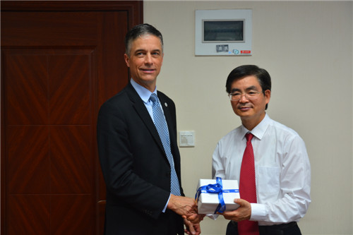 5月22日下午,德雷克大学校长厄尔·马丁博士一行三人到我校访问,校长李克勇在西区行政楼a501会议室与来宾会晤。