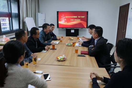 人事处倪颖军处长代表学校欢迎重庆对外经贸集团纪委委员、党群工作部(人力资源部)部长夏子荣和重庆国际经济技术合作集团有限公司党委书记、董事长赵小平来校参加“双千双师”交流,希望通过双师交流加强重庆对外经贸集团与川外的紧密合作,并建立川外教师到企业挂职锻炼的长效机制。