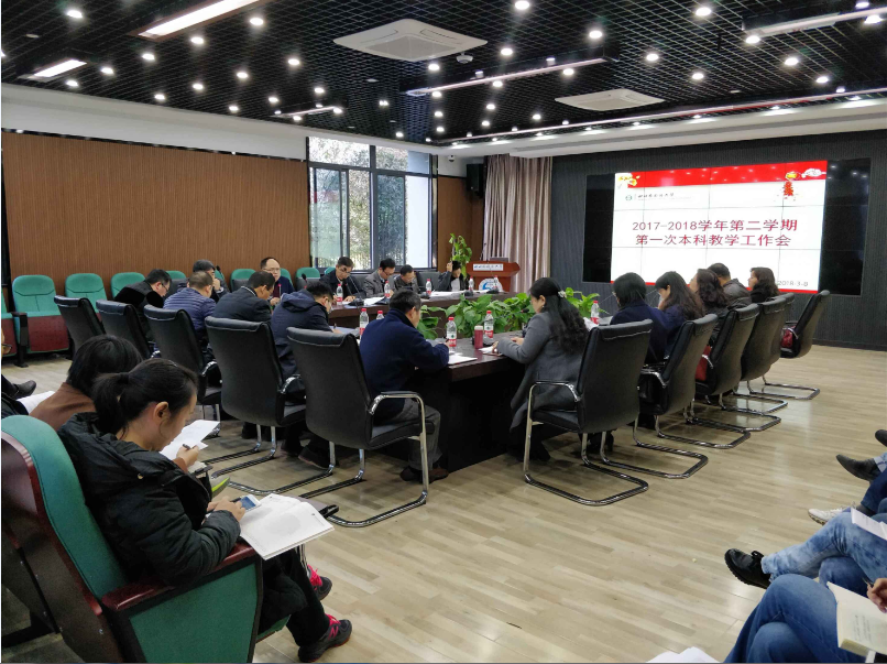 教务处处长严功军安排部署本学期主要教学工作。他首先提到,2018年是“十三五”规划承上启下的一年,任务重,是改革攻坚的一年。各院系要明确工作重点,做好工作规划,确定工作完成的时间表,逐步推进和高质量完成本科教学各项工作。接着,他从五个方面就本学期重点工作进行了强调。一是要强化纪律意识。要不断加强党的建设,深入学习贯彻党的十九大精神和习近平新时代中国特色社会主义思想,以“四个意识”为要求,推动十九大精神进课堂、进教材、进头脑,强化对教学过程的管理,坚守政治纪律,坚持立德树人;二要强化责任意识。各教学单位要保质保量完成学校各项工作任务:做好院系日常管理,做好“互联网+”“三创赛”等创新创业活动、实践周安排、“三特”项目建设、在线课程建设、特色学科群建设、一流专业建设、本科教学评估等重要工作;要强化教师的主体意识、责任意识,特别是对课堂教学的规范、质量监控与人才培养环节等方面要严格把关。三是要做好院系工作规划,提高工作的主动性和有效性;四是不断加强学习,把教学管理和人才培养当作科学工作,积极调研,合理规划,提升学科专业建设能力和管理水平;五是坚持改革创新,关注学科专业发展方向,不断完善和改革人才培养模式,打造学科专业特色。
