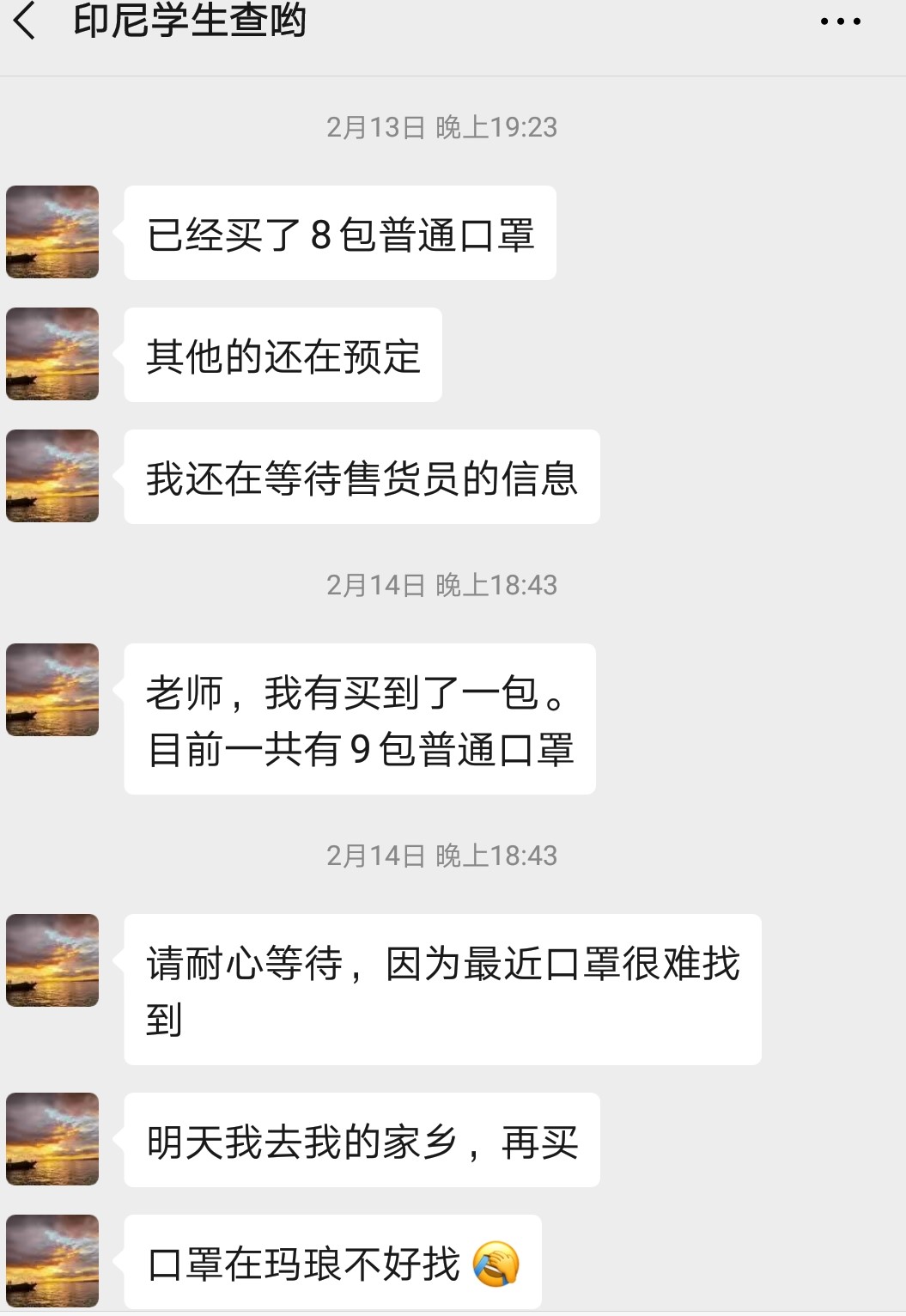 面对印尼同样紧缺口罩的困难,查哟跑遍玛琅、泗水等印尼南部几个城市,又托朋友四处寻找,终于买到了1000只一次性医用口罩和20只N95口罩。为了节约开支,留下更多的钱买口罩,查哟几乎都是步行去药店买口罩。对于这些口罩,查哟本想无偿赠送给川外的老师。但老师们考虑到查哟家庭本就十分困难,又了解到查哟的工资不高,坚持把购买口罩的费用支付给查哟。经过多次商量,查哟只同意收下买口罩的钱,交通费自己承担。他笑着说:“口罩都是走路去买的,哪有什么交通费。”
