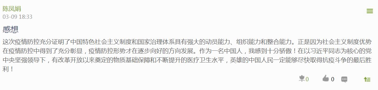 国际关系学院2018级陈文虎:通过同上一堂疫情防控思政大课,让我对中国共产党领导和中国特色社会主义制度在这次疫情防控中体现出的显著优势更加笃定。