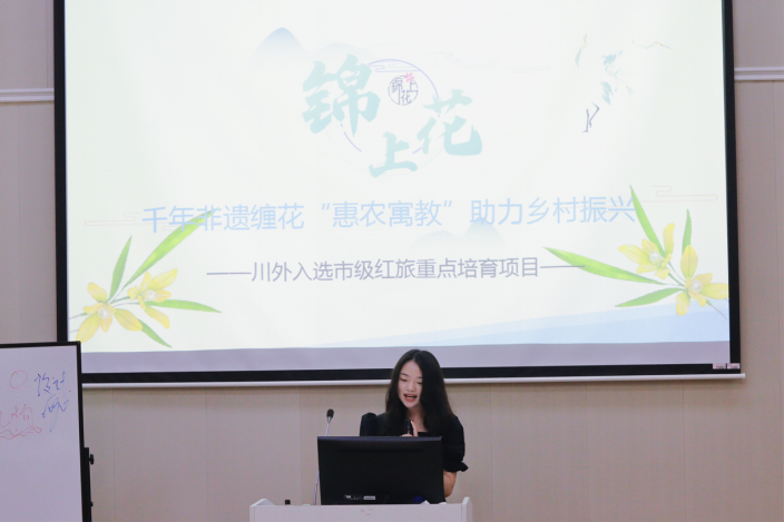 “锦上花——千年非遗缠花‘惠农寓教’助力乡村振兴”团队的实践分享和调研,有利于团队成员学史明理、学史增信、学史崇德、学史力行,体悟先辈爱国热情和革命情怀,传承红岩精神,传承党的优良传统,从而厚植家国情怀,弘扬社会主义核心价值观;也有利于成员进一步了解、传承“非遗”传统文化,提升了学生文化自信心和认同感;同时,还有利于激发听众创新创业热情,有效加强了创新创业氛围的塑造,为同学们在日后参与创新创业大赛奠定了切实可行的基础条件。