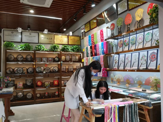 实践调研中,团队在磁器口蜀绣工坊近距离观察并亲自体验蜀绣的织造过程,学习优秀非遗项目经验,丰富项目的经验积累。重游红岩魂陈列馆,红岩陈列馆,参观革命老物件,重温历史,感受共产党人精神谱系,传承红色基因。