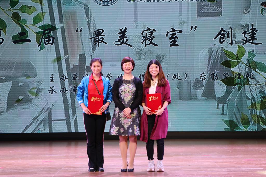 最终,来自6个学院(系)的12个参赛寝室经过精彩角逐,获得了优异成绩。松2-413、兰9-321分别获得了最佳创意和最佳才艺奖,其他寝室分获不同名次。商务英语学院辅导员聂小丹、中文系辅导员秦丽获得的优秀指导教师奖,校党委副书记张艳为两位老师颁奖。本次活动充分体现了我校和谐、文明、绿色、健康的寝室文化,为川外学生寝室文化建设起到了很好的引领作用。