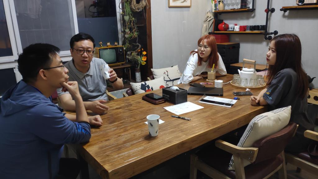 指导教师郑昊、张勇与参赛学生刁炜祺、关子昱讨论调查报告