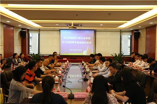 2017年6月16日下午3点半,社会学系实践基地签约仪式在西区图书馆505会议室举行。校党委副书记、纪委书记聂志强,校党委宣传部部长崔光军、校学生处副处长苏雪、校教务处副处长王伟、社会学系副主任林移刚、社会学系党总支副书记薛红以及11家实践基地代表共计40余人参加了签约仪式。签约仪式由社会学系党总支副书记薛红主持。