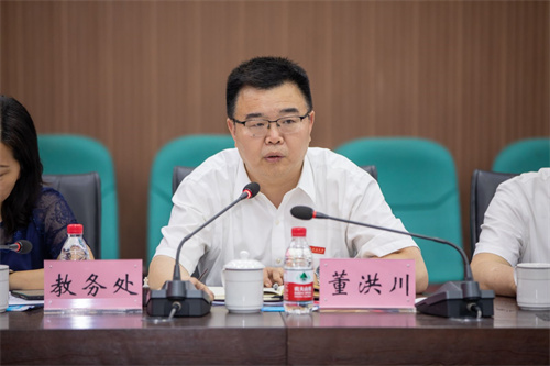 董洪川对学校“高水平新文科建设高校”情况进行详细汇报。他谈到,我校面向学科前沿构建‘1368’新文科改革范式,坚持一个指导思想、三条发展路径、六大任务引领和八大举措,培养出符合时代要求的文科新人。川外积极构建新文科建设战略,采取模式重组的方式,如跨专业、跨行业等,开发多元化、多样化、个性化人才培养模式,致力于建设具有新文科鲜明特色的外国语大学。针对专家提出关于川外下一阶段工作安排的问题,他表示,下一步学校要适度引入对文科发展有利的专业,适度改造我们现有的文科专业,促进教学组织改革,培养复合型人才。