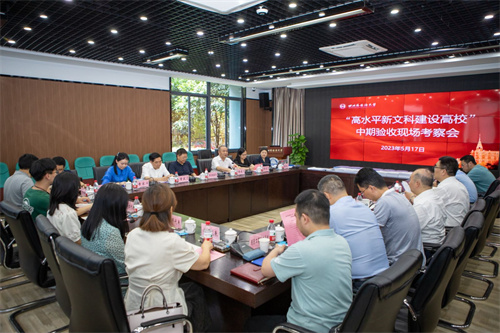 市教委高教处领导介绍验收基本状况及相关要求。何建国指出近年来国家倡导高等教育重大改革,市教委高度重视,在政策和财力上大力支持高校改革。新的教育改革要新在学科交叉融合、现代信息技术对传统方式的改造等。他强调,在当今时代急剧变化的情况下,如何进行人才培养、学科建设问题是改革的当务之急。我们要进一步推进学科建设、四新建设高质量发展,对川外建设成果给予肯定和支持,能够让川外的新文科建设带动全市更好地发展。