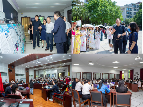 汇报会召开前,专家组还分别参观了学校智慧教室、教学成果展,观摩了多语种口译、模拟联合国教学活动和实践周活动。