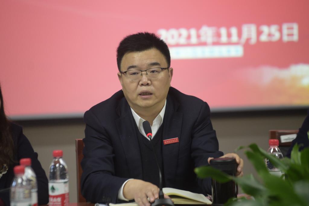 校长董洪川讲话。他强调,学校的根本任务是立德树人,学校进一步巩固本科教学基础地位、夯实人才培养中心地位,为国家和地方培养符合新时代经济社会发展要求的高素质复合型人才。他要求,全校各教学单位要明确方位、找准定位、提高站位,全面服务于与服从于人才培养这个中心工作;各二级学院要开阔眼界、聚焦学科专业建设与人才培养主责,注重环境打造、文化氛围营造、关爱青年教师发展与成长等重要工作,并要求各学院领导要尽量“少开会,开短会”;各职能部门要做好服务与保障工作,与各教学单位齐心协力推动本科教育建设和人才培养,推动学校“高水平新文科建设高校”“国际化特色高校”建设工作。最后,他围绕“一流专业”申报与建设、教学成果奖打造与申报、各类项目经费使用规范等工作进行了强调,提出了要求。