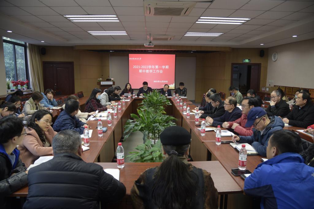 教务处处长刘玉梅首先从六个方面对本学期前半期工作做总结。一是加强思想政治教育工作,印发《四川外国语大学课程思政建设行动计划(2021-2025)》,成立四川外国语大学课程思政教学研究中心,全面推进课程思政建设;二是以“一流专业”为导向,推动专业建设各项工作;三是深化课程建设与教育教学改革;四是深入推进实践教学和创新创业工作;五是辅修工作和各类测试工作顺利推进,研究生推免工作圆满完成;六是新文科特色项目、“三进”工作、“十四五”规划、质量年报、项目结题等各类专项工作有序开展。随后她从测试工作、新文科建设工作、人才培养方案定稿与排课、“三进”工作总结、落实教授给本科生授课、期末考试工作以及优秀教学管理者评选工作等方面对后半学期工作进行安排部署。