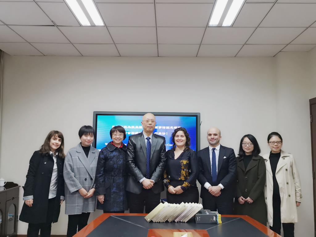 2019年11月13日下午,乌拉圭驻重庆总领事馆副总领事阿古斯缇娜女士、贸易投资事务专员布鲁诺先生来访我校。副校长李小川在西区行政楼A501会议室与来宾会晤,国际合作与交流处、西班牙语葡萄牙语系、国际教育学院塞万提斯语言中心有关领导及教师参与会见。