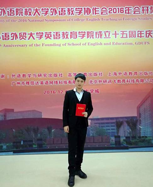 2016年12月2日至4日,第九届“全国外语院校大学外语教学协作会2016年会暨大学英语演讲比赛”在广东外语外贸大学举行。本次大赛由全国外语院校大学外语教学协作会及广东外语外贸大学主办,吸引了来自外交学院、洛阳外国语学院、北京第二外国语学院、西安外国语大学、北京语言大学等全国各外语高校推选的22名选手参赛。我校选派的来自教育学院的2014级徐睿同学凭借出色的表现,以第二名的成绩荣获此次大赛二等奖。