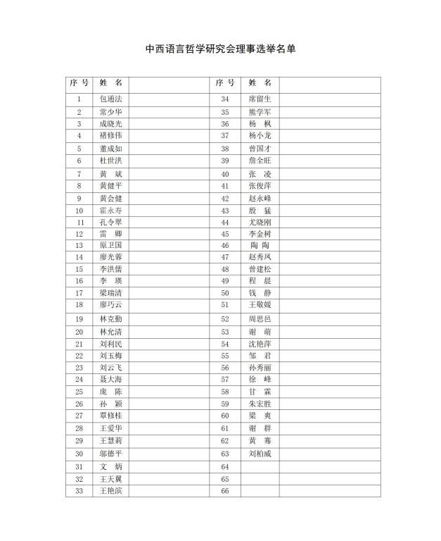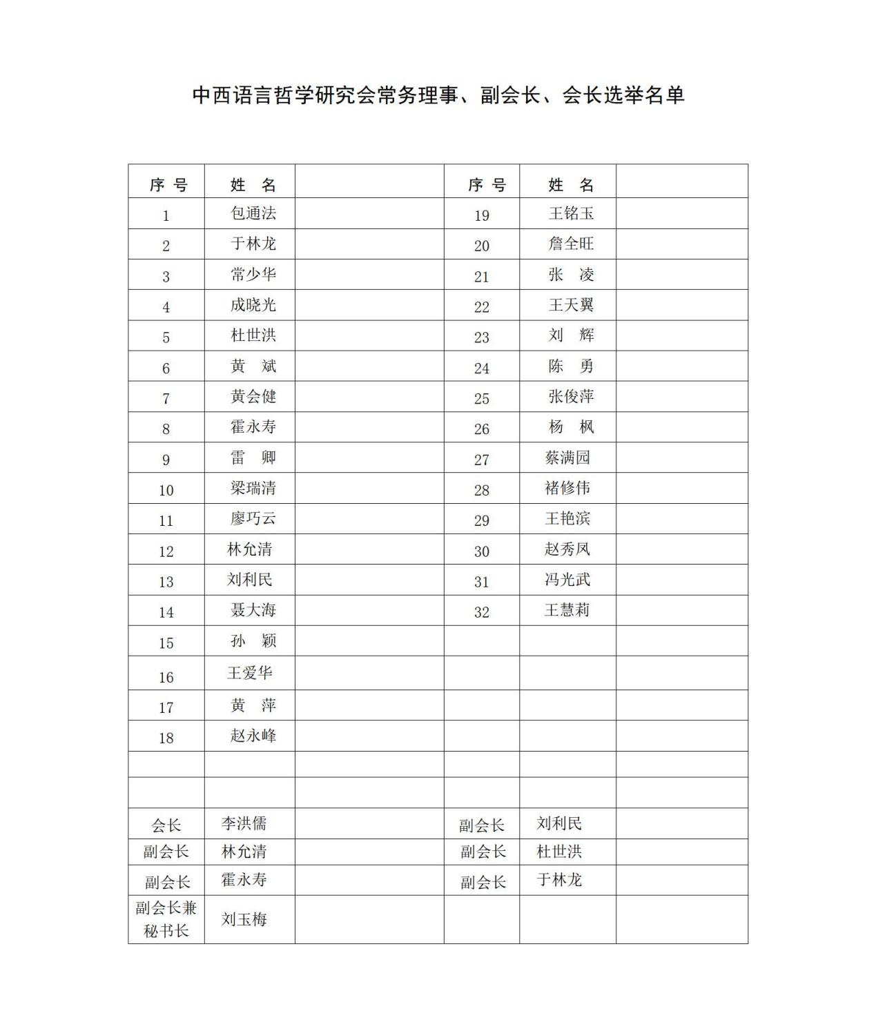 2023年7月18-24日,第十七届中西语言哲学夏日书院暨第三届全国体认翻译学研讨会在云南师范大学顺利召开,在此期间,即7月19日下午,大会正式进行换届选举,我校外国语文研究中心李洪儒教授全票通过,当选为中国英汉语比较研究会中西语言哲学专委会会长,我校外国语文研究中心王寅教授荣膺终生名誉会长,我校教务处处长刘玉梅教授当选为学会副会长兼秘书长,我校英语学院王天翼教授当选为学会副秘书长,此外本次选举共产生32名常务理事,63名理事,现将名单公布如下: