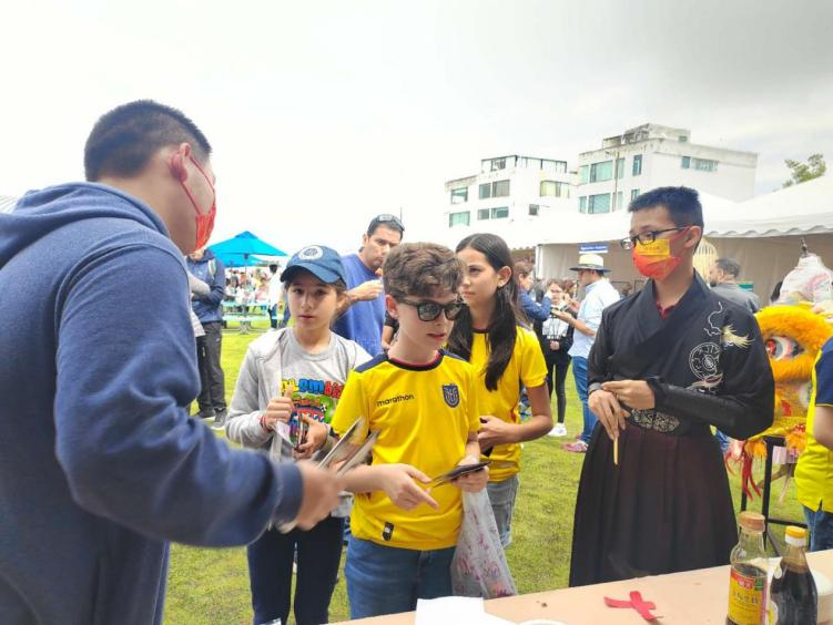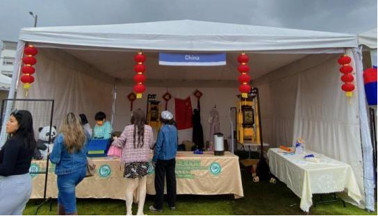 当地时间4月22日,厄瓜多尔思源中国语学校孔子课堂受邀参加Cotopaxi学校国际文化艺术节。本次艺术节设置了20余个国家展区,旨在以实物和艺术形式,展现世界各国多彩文化、促进多元文化交流。思源中国语学校孔子课堂承担了本次中国展区布置和文化展示部分。Cotopaxi国际学校师生及家长共计1000余人参加了此次文化盛宴。