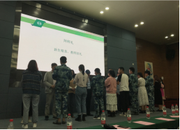 班导师代表秦勤老师致辞。为使新同学能够尽快适应大学生活,秦勤老师用心的叮嘱了同学们“五个一”: “一口鸡汤”,正视困难,不忘初心; “一句叮嘱”,踏实付出,不问结果;“一个提醒”,珍惜时光,不负光阴;“一个祝愿”,收获知识、友情、爱情;“一则广告”,高翻队招新。她鼓励大家勇于踏出第一步,抓住每一个提升自我的机会,积极参与高翻队选拔。
