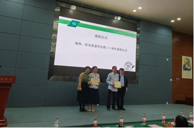 在新生开学典礼上,学院还向从教三十周年的高伟、阳光武两位老师颁发了荣誉证书。三尺讲台,一心坚守;教书育人,传道解惑。三十年载如一日,高伟、阳光武为学校和翻译学院的教育事业奉献了最美好的青春年华,他们的执教精神激励着在座的每一位师生。
