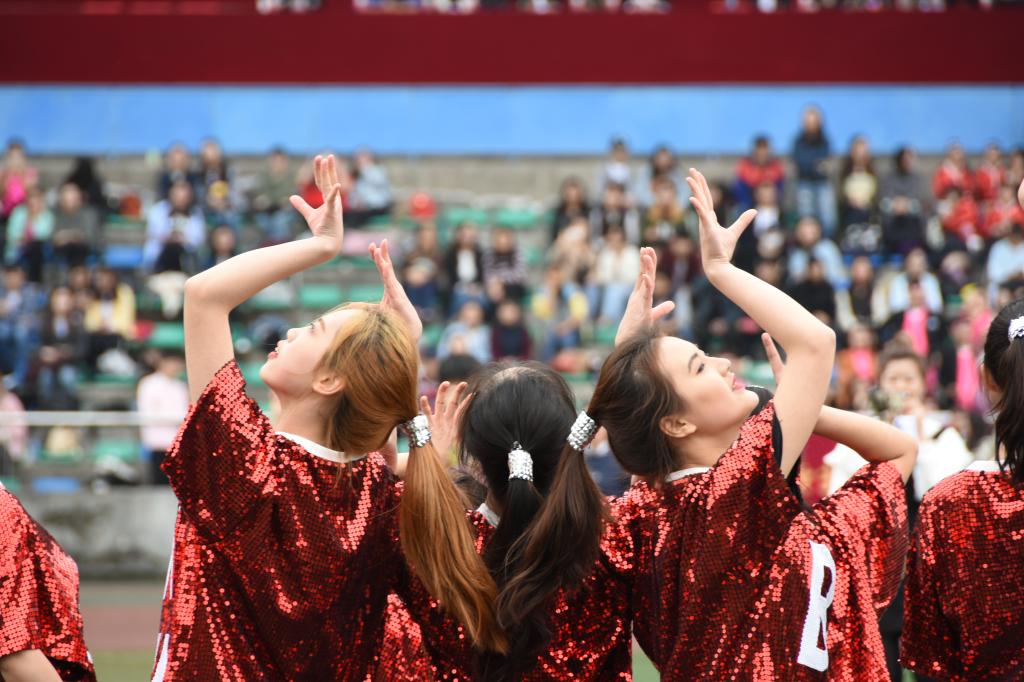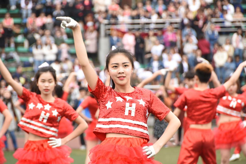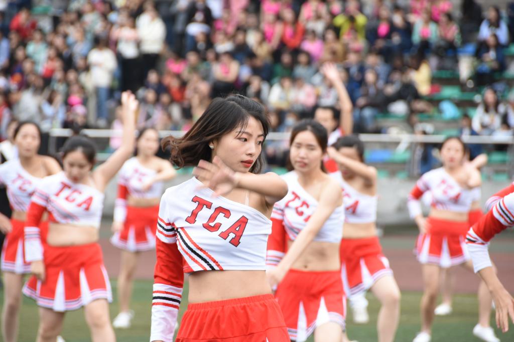 当天下午1点,比赛正式开始,各参赛队伍迈着整齐划一的步伐,通过展示优美的舞姿,上演劈叉、空翻等高难度动作,引得观众连连称赞。此外,刚获得世界排舞锦标赛冠军的校排舞队,也为大家带来了精彩的助阵表演。