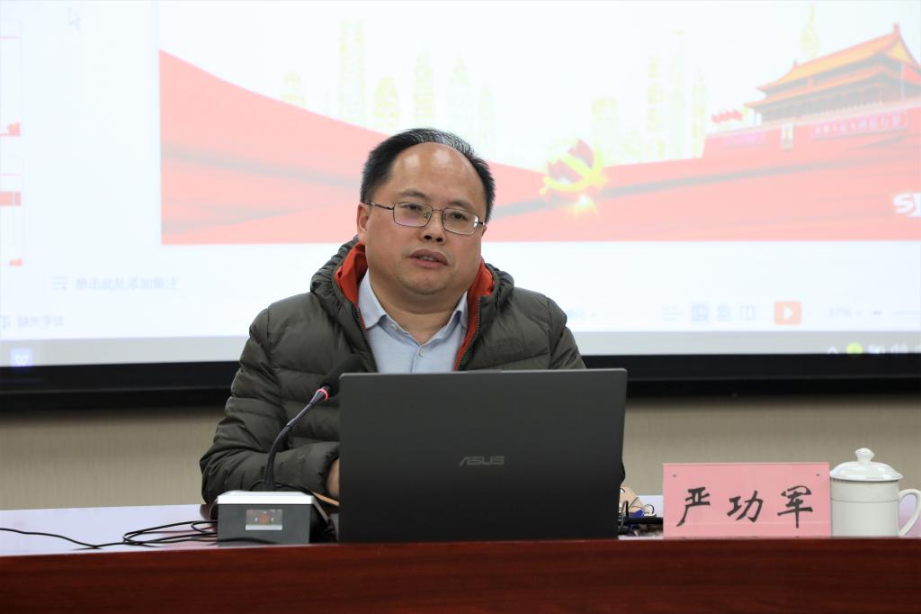 党的十九届六中全会是在我们党成立一百周年的重要历史时刻,在“两个一百年”奋斗目标历史交汇的关键节点召开的。百年大党再出发。站在新的历史起点上,全会回望过去、展望未来,必将统一全党思想和行动,在新时代更好开创党和国家事业新局面。严功军联系实际,从深刻认识总结党的百年奋斗重大成就和历史经验的重大意义、深刻认识党的百年奋斗的初心使命和重大成就、深刻认识中国特色社会主义新时代的历史性成就和历史性变革、深刻认识党的百年奋斗的历史意义和历史经验、深刻认识以史为鉴开创未来的重要要求及从党的百年奋斗历程中汲取智慧和力量等六个方面对全会精神进行了系统阐述和深入解读。