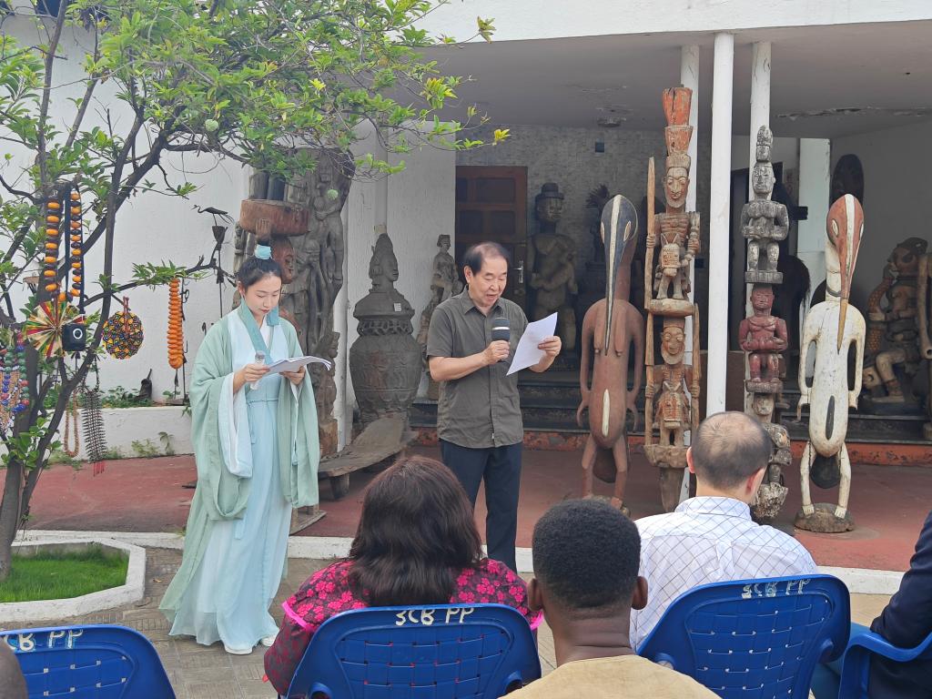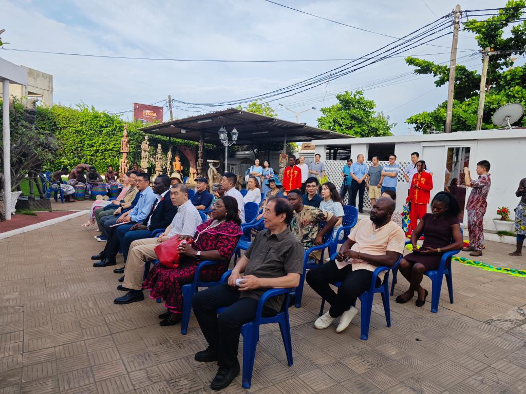 中国驻多哥大使馆参赞李源、中国驻贝宁文化中心主任魏军、多哥议员纳比托郭-伊诺尚、多哥博物馆协会主席,博物馆馆长桑达-纳贝得、多哥博物馆协会秘书长伊诺萨-摩莫尼、多中友协副会长阿博夫人、洛美法国国际学校副校长娜塔丽-芭瑞索、青岛市文化和旅游局访多代表团、贝宁阿博美卡大学孔子学院中方院长赵华修、中国援多医疗队以及洛美大学孔子学院师生代表共计60余人出席了下午的活动。