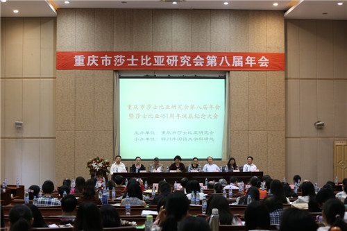 “重庆市莎士比亚研究会第八届年会暨莎士比亚451周年诞辰纪念大会”于2015年4月18日在四川外国语大学宏文楼国际报告厅召开。本次大会的主题是“舞台内外的莎士比亚”。来自西南大学、重庆大学、四川外国语大学、重庆师范大学、重庆邮电大学、重庆交通大学、重庆科技学院、长江师范学院、重庆文理学院、三峡学院等多所高校
