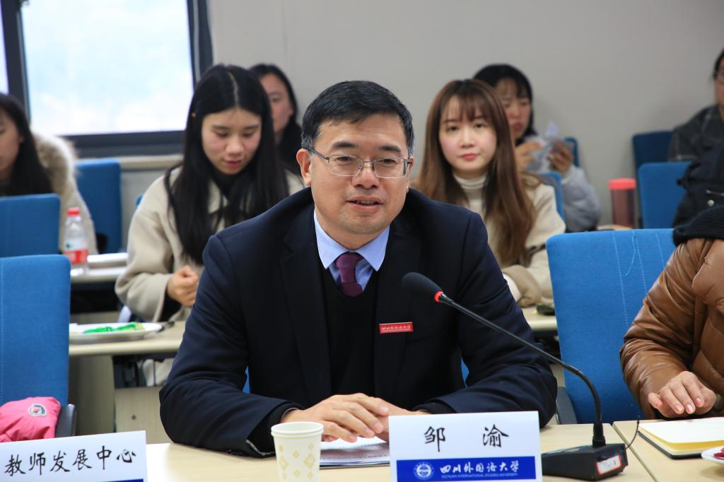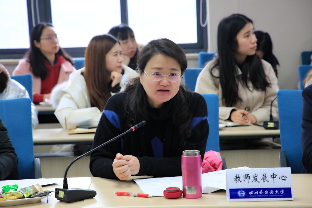 教师发展中心张季菁主任首先通报了2019年新教师入职培训的整体情况。根据《2019年新入职教师培训方案》,79位新入职教师顺利完成课程培训、课堂观摩、“一对一”老带新、微课试讲四个“规定动作”。其中,开展培训课程17场,内容包括校史文化、教师角色转换、教学工作基本要求及技能、科研创政策解读及科研创新、高校教师意识形态能力构成及培养等;开放20门精品示范课224学时供新教师观摩;二级学院分中心为新教师配备导师开展“一对一”老带新;结业考核时新教师提交10分钟的微课试讲视频、听课记录表和学习报告,录入教师电子成长档案。接着,张主任介绍了教师发展中心信息化平台建设、“四模块”结构化教师发展课程及示范性“金课”建设情况,希望新教师在教师发展中心的温暖大家庭里,彼此点亮,打破专业与专业间的壁垒、教学与科研的壁垒、学校与行业的壁垒,将个人发展与川外发展、与党的教育事业发展同频共振,从而获得教师职业的幸福感和崇高感。