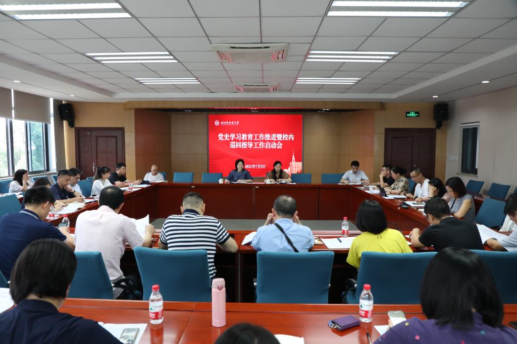 为深入推进党史学习教育扎实开展,7月5日下午,学校在立德楼C517会议室召开党史学习教育工作推进暨校内巡回指导工作启动会。党史学习教育领导小组办公室成员、