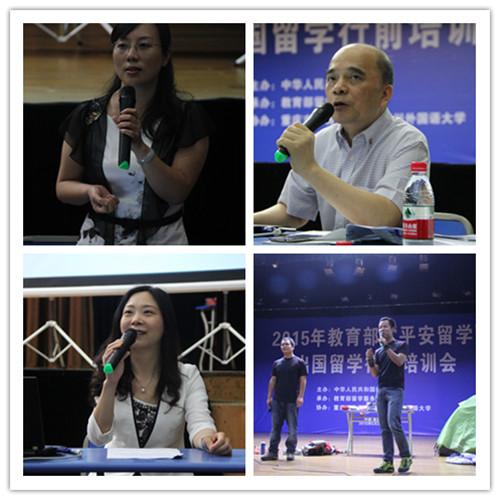 2015年5月22日,“2015年教育部‘平安留学’出国留学行前培训会”在四川外国语大学大礼堂隆重举行。此次培训会由教育部主办、教育部留学服务中心承办、重庆市教育委员会和四川外国语大学协办。培训对象包括公派留学人员(包括国家公派留学人员和单位公派留学人员),广大自费留学人员,各有关高校负责公派出国留学的工作人员以及地方自费留学中介机构、协会等相关工作人员。出席此次培训会的领导有: