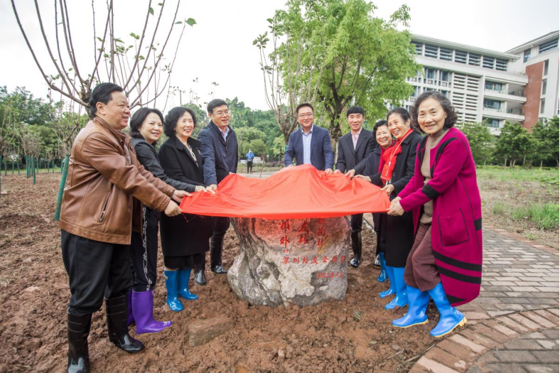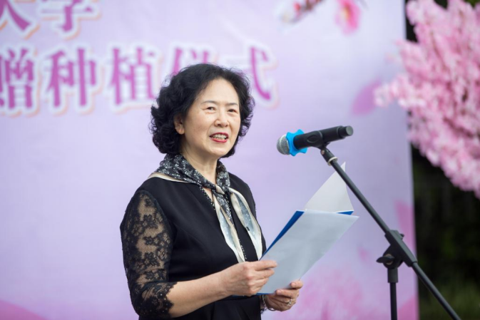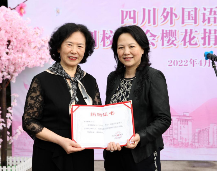 深圳校友会会长周世珍发言时表示,“一朝川外人,一生川外情”,深圳校友们始终牢记母校恩情,牵挂母校的发展。她为今日川外办学层次的提升和办学规模的扩大感到由衷的骄傲。为感恩母校的教育与培养,为给年轻的学弟学妹们创造更好的学习环境,深圳校友会捐赠15万元,用于“我爱川外”校友林首期樱花林的打造,祝愿母校桃李芬芳,再创辉煌。