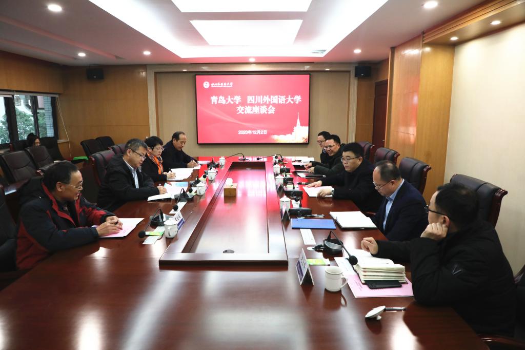 12月2日上午,四川外国语大学与青岛大学共谋发展交流座谈会在立德楼A301召开。青岛大学副校长肖江南、外语学院院长卞建华,我校校长董洪川及两校相关院系负责人出席会议。会议由教务处处长严功军主持。