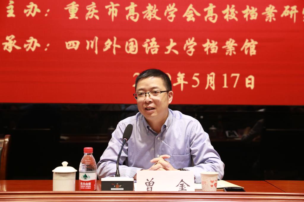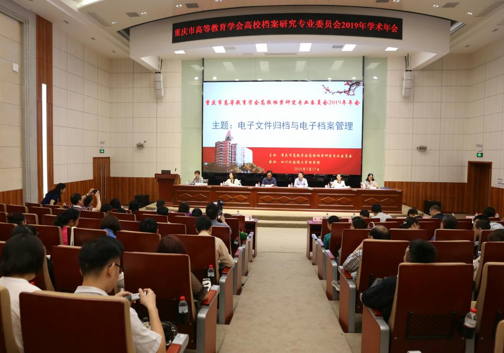 5月17日,由重庆市高等教育学会高校档案专业委员会主办、四川外国语大学承办的2019年学术年会在我校宏文楼国际报告厅举行。本次年会以“电子文件归档和电子档案管理”为主题。重庆市委办公厅档案综合处处长曾金、重庆市高教学会秘书长刘颖、重庆市教委办公室王静出席会议。来自全市36所高校的89位档案工作者参加会议。会议由重庆高教学会高校档案研究专委会秘书长喻玲主持,四川外国语大学常委、纪委书记苟欣文出席开幕式并致辞。