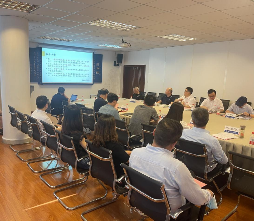 在自由交流环节,中外文化比较研究中心姚继中、外国语文研究中心李洪儒、苏杭、当代中国研究院朱士松、首席研究员苟欣文、区域国别研究院陈广猛以及学管学科建设的王仁强副校长,从科研机构的人员、场地、工作机制、运行经费、绩效考核、集体攻关、团队建设、成果培育等方面提出了建议和意见。