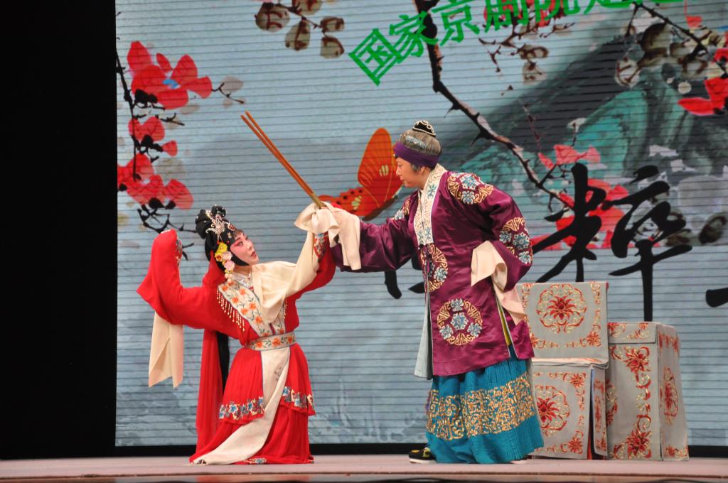 不同于《三岔口》的低婉腔调,《红娘》以一句高亢的“琴童带路”吸引了观众们的注意力。戏中,张生和崔莺莺不顾封建势力的阻挠,极力挣脱礼教的束缚,终于在侍女红娘费尽心力的帮助下,有情人终成眷属。“叫张生你藏在棋盘之下,我步步行来你步步....可算得上是一段风流佳话。”剧中红娘幽默风趣、活泼俏皮,经典的台词,惹得观众们连连叫好,时常爆发出雷鸣般的掌声,经久不息!
