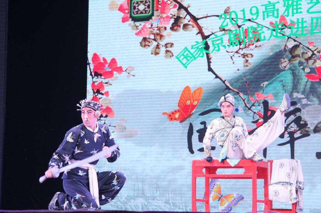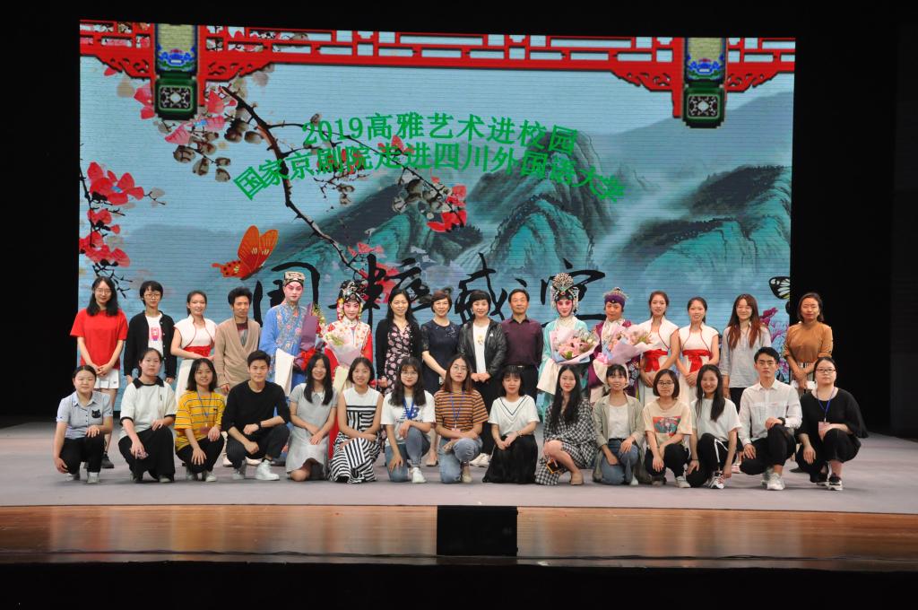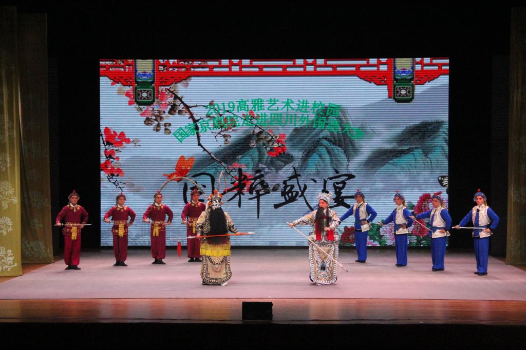 5月22日晚7点,由教育部、文化和旅游部、财政部联合主办的“2019高雅艺术进校园—国家京剧院走进四川外国语大学”的专场演出在我校东区大礼堂圆满举行。重庆市教委体卫艺处正处级调研员阴莲川,四川外国语大学党委副书记张艳,四川外国语大学纪委书记苟新文,国家京剧院国家一级演员、三团党支部书记、副团长徐畅和近千名师生代表共同欣赏了这场高水平的视听盛宴,近距离感受了国粹的魅力。
