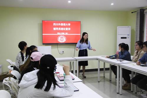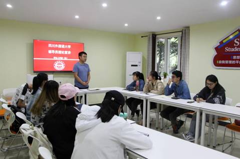 2019年5月13日下午15:00,四川外国语大学5月份辅导员理论宣讲在松苑9舍学生之家活动室顺利举行。本次理论宣讲的主讲人是国际商学院辅导员马陈静、冯曦,参加活动的还有院系辅导员代表以及学生干部代表、学生党员代表。活动分为两个议程,首先是两位辅导员进行理论宣讲,其次是交流讨论环节。