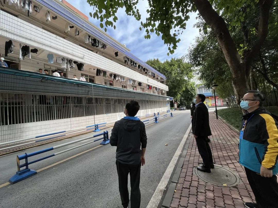 今天下午,市教委一级巡视员邓沁泉、二级巡视员胡斌、体卫艺处处长程翔宇在我校党委书记邹渝、校长董洪川及相关部门负责人陪同下,走访学生宿舍,慰问教师志愿者和学生,现场调研师生们的工作和生活情况。