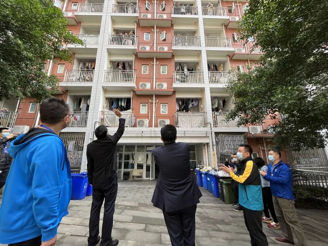 邹渝书记抬头望向阳台,大声叮嘱闻讯而来的同学们,“大家在特殊时期也要争做标杆,注意自我防护,遵守防疫规定。请大家放心,学校一定会全力以赴,让我们共同努力,一起打赢这场川外保卫战”。董洪川校长鼓励大家:“静态管理期间,大家平衡心态,不要放松学习 ,多看书,读好书。”