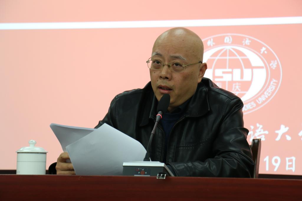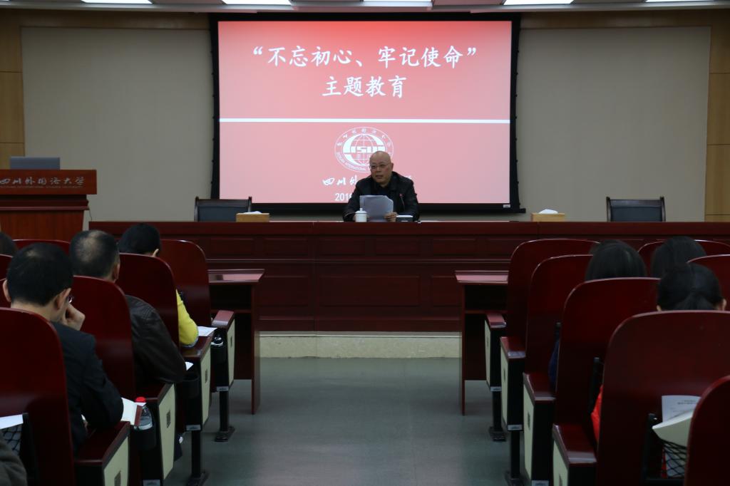 11月19日上午,副校长李小川作“不忘初心,牢记使命”主题教育专题党课报告。校领导,行政直属二支部、重庆非通用语学院、西班牙语葡萄牙语系、中文系、体育部教工党员听取了报告。